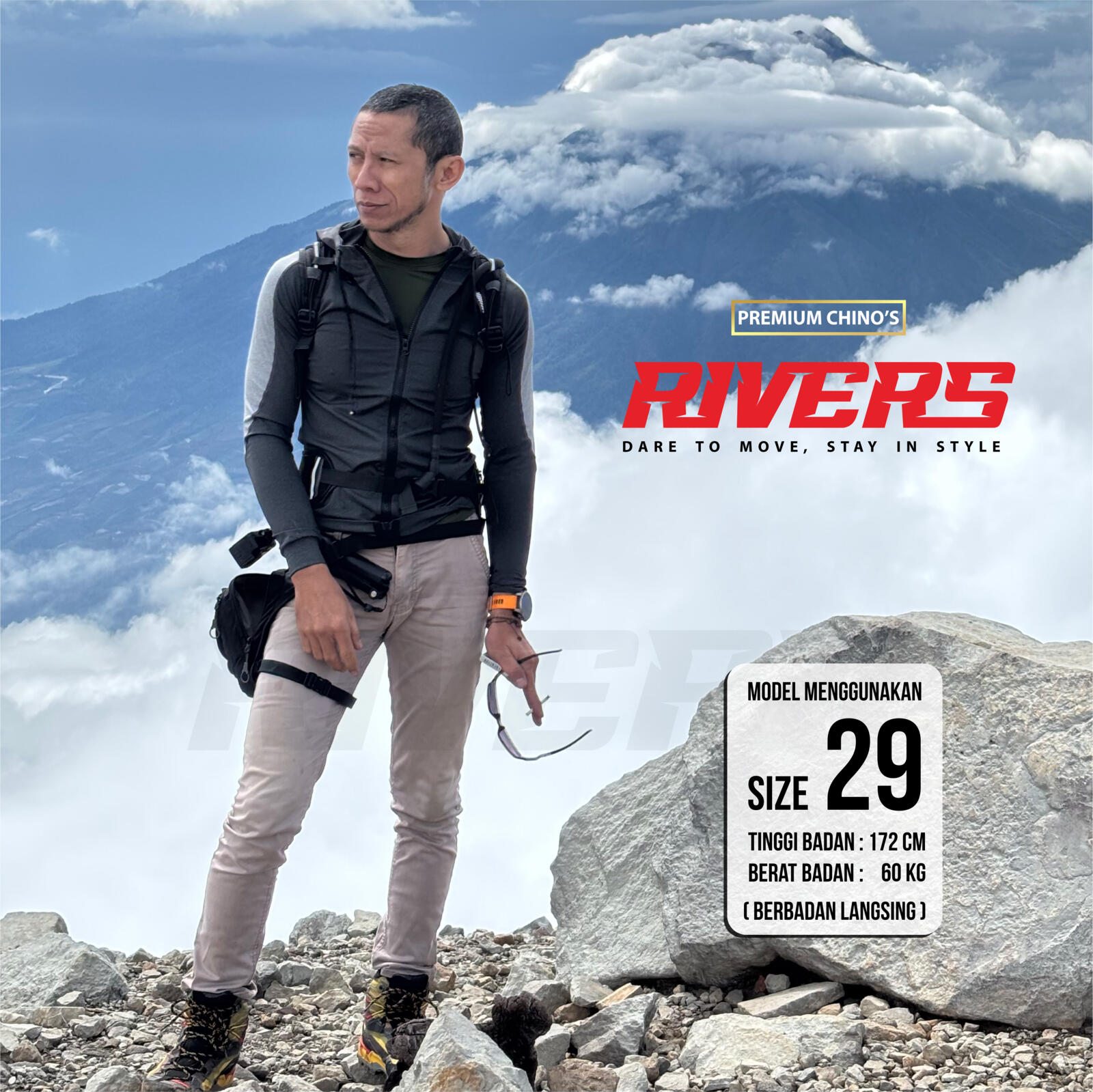 RIVERS.ID adalah brand Celana Chino Panjang Ekslusif untuk Pria, pilihan tepat untuk gaya casual dan formal! RIVERS.ID hadir berbahan premium, memberikan tampilan yang elegan dan serbaguna. Desain slimfit dan stretch membuatnya nyaman dipakai sepanjang hari, cocok dipakai saat bekerja, hangout, maupun ke acara santai.